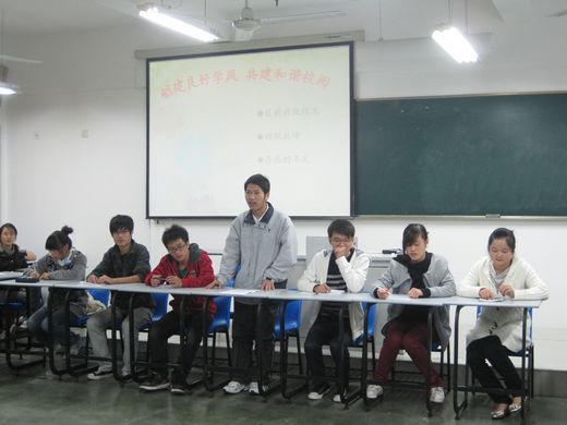 11月4日晚上,宋副书记现场观摩了管理学院A09行政2班的创先争优主题班会,班会以“创建良好学风,共建和谐校园”为主题,突出“抓班风、促学风”, 针对当前大学生中普遍存在的课堂睡觉、校园恋爱、沉迷网络等现象进行了深入剖析,讨论会还集体宣读了践行优良学风倡议书。宋副书记希望广大学生树立远大目标,热爱学习,多读经典和名著,加强身体锻炼,学会自我心理调适。(学工部)