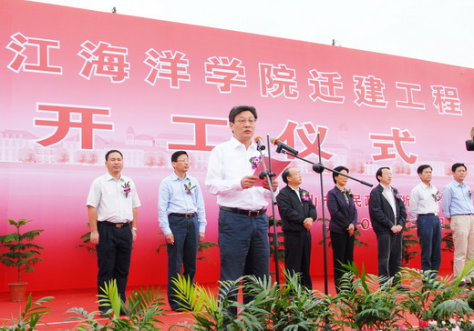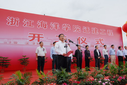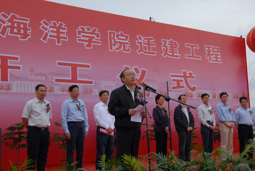 周国辉在致辞中指出,浙江海洋学院迁建工程开工是学校发展历程上的大事,也是舟山教育事业发展史上的一件大事。就港口城市的发展而言,人力资源供给是缔造软环境的决定性因素,而大学是集聚和涵养高级人才的场所。浙江海洋学院半个多世纪特别是近10年来,通过调整学科专业设置、引进高层次师资、强化涉海科学研究、提高人才培养质量等措施加强内涵建设,各项事业得到了快速发展,为舟山经济社会发展做出了积极贡献。浙江海洋学院迁建工程的破土动工,标志着学校的建设和发展又向前迈进了新的一步。他希望学校以此为契机,积极创建浙江浙江海洋大学,加快建设成为全国著名的海洋知识创新基地、科教兴海技术攻坚基地、海洋高新技术产业孵化基地。