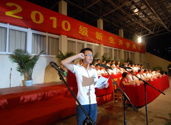 今年的开学典礼别出心裁,新生们首先观看了十分钟的浙江海洋学院宣传片,并由幻灯设备全程对典礼进行展现;校领导为新生代表佩戴校徽,每一个“90后”在佩戴完校徽之后自发地鞠躬;教师代表和学生代表集体朗诵诗情画意的欢迎辞;学生们全体起立宣誓,激情满怀,响彻云霄。