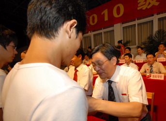 校长苗振清代表学校对新同学提出五点希望:一是要学会适应。在老师指导下养成自主、自觉、自律和自学的好习惯。二是要学会珍惜,认真把握好每一个今天,成功从来都不是一蹴而就的。 三是要学会尊重,尊重老师、尊重同学、尊重每一个人,更要学会尊重知识、尊重科学。学习别人的长处会使自己更快地成长。四是要学会勇敢,勇于创新,敢于批判,做一个创新奋进的勇者。五是要健康发展,始终保持身体健康、心理健康和社会适应良好这三维一体的完满状态。