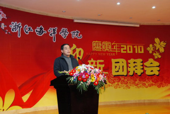苗校长在致辞中指出,一年来,在全校师生员工的共同努力下,我校扎实开展深入学习实践科学发展观活动,进一步强化了“扩硕、申博、升大学”的战略目标。继续实施内部管理体制改革,首次在教代会上以票决的方式审议通过与教师切身利益相关的重大制度,推进了民主管理、依法治校的进程;学科布局更加完善,教育教学质量稳步提高,科研实力持续增强,师资队伍不断优化,社会影响力进一步提升,在学生工作、后勤保障和社会服务等方面,齐头并进、成绩显著;首次招收了加拿大等国家的留学生。着力推进浙江海洋大学筹建工作,新校区迁建工程得到省市政府的高度重视和大力支持。