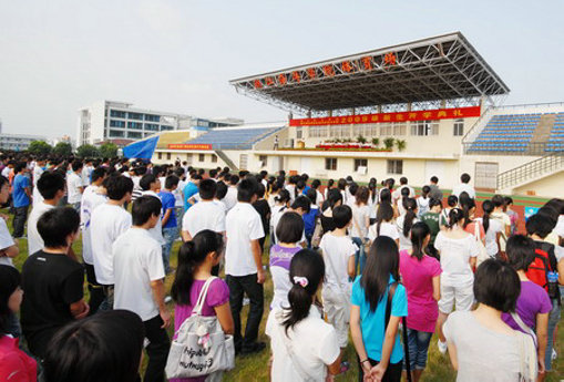 9月13日上午,浙江海洋学院和浙江海洋学院东海科学技术学院2009级新生开学典礼在东校区田径场隆重举行。校党政领导周达军、宋富军、吴中平、吴常文、虞聪达、刘定山、任淑华出席典礼,校长苗振清致辞,校党委副书记黄建钢主持典礼。相关职能部门和各二级学院(系)党政负责人、新生家长代表和来自全国17个省市的4155名新生、79名研究生参加了典礼。