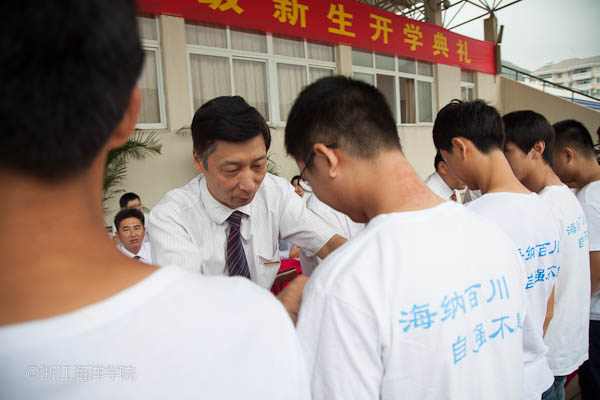 吴常文院长介绍了学校办学基本情况,描绘了学校正在建设舟山临城和杭州萧山新校区的美景,指出浙江海洋学院是一所具有光辉办学历史、鲜明办学特色、美好发展前景的学府。当前,国务院明确提出要在舟山“建设国家级海洋科教基地”,集中力量“做大做强浙江海洋学院”,学校正借势海洋强国和浙江海洋经济发展示范区、舟山群岛新区建设机遇,争取到2020年,建成办学特色明显并国内一流、部分学科国际知名的高水平综合性海洋大学。他同时代表学校对新同学提出五点希望:一要勤于励志,努力成为理想远大、信念坚定的时代青年。在大学校园里长知识,长智慧,长道义,主动把自己的学业与前途融入国家事业。二要敏于求知,努力成为本领过硬、奋发有为的时代青年。时刻保持对知识和学问、对真理和智慧的执着,掌握求和的方法,不断丰富和完善自己。三要善于实践,努力成为求是务实、建功立业的时代青年。学会理论联系实际,活学活用,造福社会。四要勇于创新,努力成为与时俱进、开拓进取的时代青年。勇于标新立异,打破常规。五要力于修身,努力成为传承文明、引领风尚的时代青年。争做传统美德的传承者、道德规范的实践者、社会风尚的倡导者。