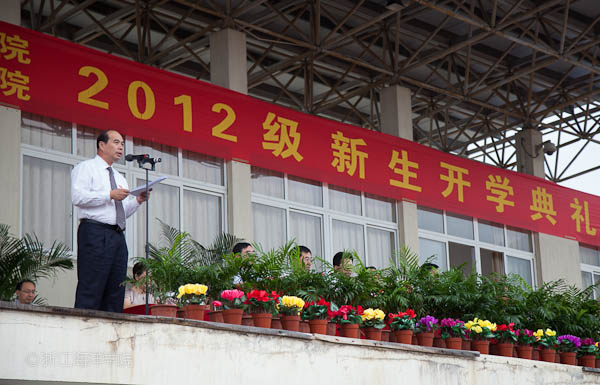 “今天,你为什么上大学 ?”“今天,你如何上大学”?“大学毕业后,你想干什么?”浙江海洋学院针对新生的提问,催人思考,催人奋进。 9月13日上午,浙江海洋学院、浙江海洋学院东海科学技术学院2012级新生开学典礼在东校区田径场隆重举行,包括180余名研究生在内4500余名新生,排成方阵,聆听教诲,庄严宣誓。校党政领导班子成员周克非、朱世强、吴中平、虞聪达、徐士元、张元龙、刘定山、任淑华出席典礼,院长吴常文讲话,院党委副书记夏跃平主持典礼。各二级学院党政负责人、各相关职能部门负责人、东海科学技术学院负责人和各系主任,各学院学工办主任、新生班主任,以及老生代表参加典礼。