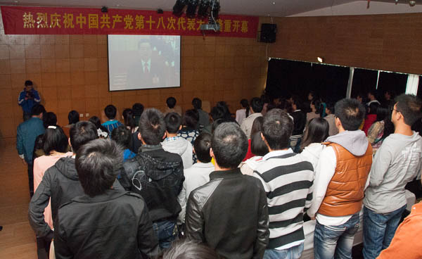 11月8日上午9时,中国共产党第十八次全国代表大会在人民大会堂隆重开幕,我校广大师生通过电视直播、网上直播以及广播等多种渠道收听和收看大会开幕式盛况。学校党委书记周克非,党委副书记黄建钢与机关党总支支部委员,离退休支部委员以及师生代表一起,集中收看了开幕式盛况。广大师生对胡锦涛总书记向大会所作的《坚定不移沿着中国特色社会主义道路前进 为全面建成小康社会而奋斗》的报告反响热烈。