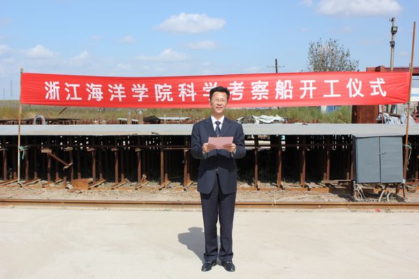 开工仪式简短、热烈、隆重。吴中平副院长代表学校致辞,他介绍了学校的基本情况,并指出科考船开工建造是我校建设与发展历史上的一件大事,标志着我校向海洋科学基础研究和高新技术研发又迈进了一步,为学校涉海类学科专业的教学科研工作的开展和水平的提升提供物质保障,在促进学校海洋学科专业发展的同时,也必将促进学校为国家海洋事业的发展和浙江海洋经济发展示范区及浙江舟山群岛新区建设作出更大的贡献。他要求在科考船的建设过程中,学校科考船建造工作小组和牵头部门、设计单位、建造单位和监理单位等部门再接再厉,精诚合作,按照建造合同的要求抓紧施工,加强组织管理,切实履行好各自的建设责任,高标准、高质量、按期完成建设任务,共同把科考船打造成近海海洋科学考察船中的精品。