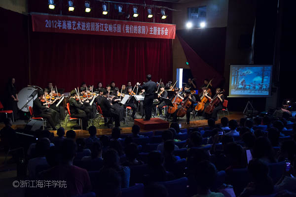 10月9日下午,“2012年高雅艺术进校园”——浙江交响乐团《我们的家园》主题音乐会在我校隆重举行,副院长、校美育工作委员会主任虞聪达出席音乐会并致辞。