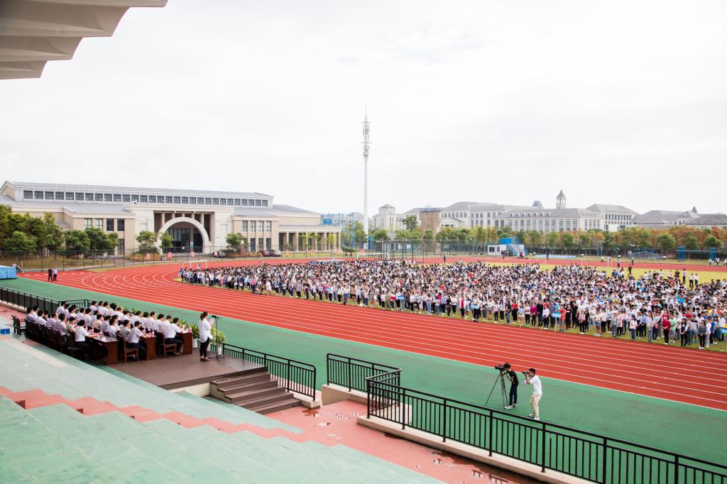 9月12日上午,2016级新生开学典礼在长峙校区体育场隆重举行,学校领导刘宏明、夏跃平、虞聪达、徐士元、张元龙、徐汉祥、裘愉萍、谢永和、黄建钢、虞剑锋、陈宏祖,及各学院和相关部门负责人在主席台就坐,党委副书记吴中平主持典礼。