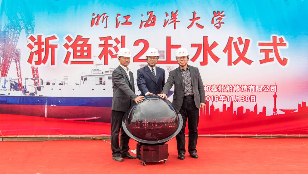 历经11个月的建造,我校第二艘科考船——“浙渔科2”渔业资源调查船顺利上水。11月30日,上水仪式在舟山市和泰船舶修造有限公司制造基地(岱山)举行。上午11点08分,我校副校长徐士元、舟山市海洋与渔业局党组副书记孙景良、和泰船舶修造有限公司总经理余平共同启动上水按钮,这标志着“浙渔科2”渔业资源调查船基本建造完成,等后续的出海调试及内部装修后,即可交付使用。