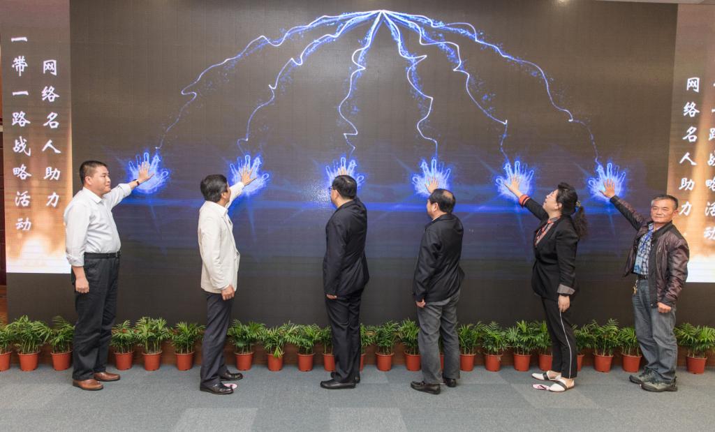 最后,章勋宏、季晓斌、徐张艳、刘宏明、网络名人代表“奥卡姆剃刀”和舟山银发好网民代表郑宝森一起按动屏幕手印,共同启动“一路一带 海上丝路”主题活动。