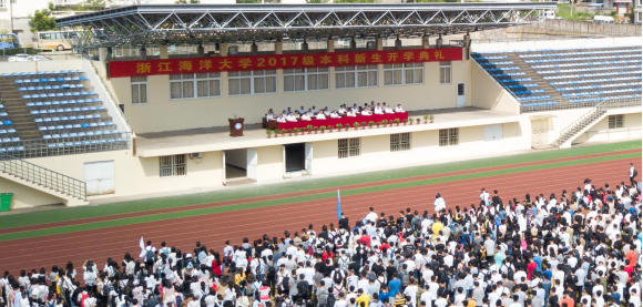 9月17日上午,2017级新生开学典礼在定海校区田径场举行。学校领导刘宏明、夏跃平、虞聪达、徐士元、张元龙、徐汉祥、谢永和、虞剑锋、陈宏祖,及各学院和相关部门负责人在主席台就坐,党委副书记吴中平主持典礼。各学院分管学生工作负责人、全体辅导员、2017级新生班主任、2700余名本科生参加了开学典礼。