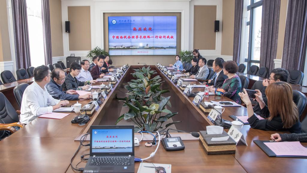 参观结束后,双方就合作办学进行了交流洽谈。会上,程路主席表示,这是他第二次来浙江海洋大学,对学校的办学特色印象很深刻。浙江海洋大学地处舟山,不仅具备区位优势,还在学术研究、教学内容等方面,对我们国家发展和推动“一带一路”建设有着重要的联系。他希望中国西促会和相关企业以更大的精力和热忱投入到与浙江海洋大学的合作中,共同推动“一带一路”建设。