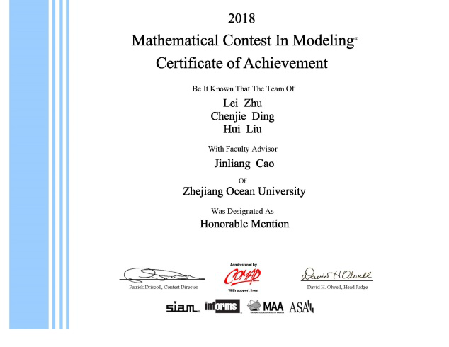 据悉,美国(国际)大学生数学建模竞赛(MCM/ICM)由美国数学及应用联合会(COMAP)主办,是世界顶级数学建模竞赛,享有数学建模“奥林匹克”之称。该项赛事始于1985年,至今已成功举办34届,现已成为世界上影响范围最广的大学生学科竞赛之一。本届大赛共有来自美国、中国(大陆和港澳台地区)、英国、法国、日本、加拿大、新加坡、印度、爱尔兰、西班牙、澳大利亚等国家的10670支队伍报名参赛。我校四只参赛队伍由来自于数理与信息学院、海洋科学与技术学院、船舶与机电工程学院、港航与交通运输工程学院、经济与管理学院和外国语学院的12位同学组成。本次成功获奖,标志着我校的大学生数学建模竞赛水平有了较大提升。