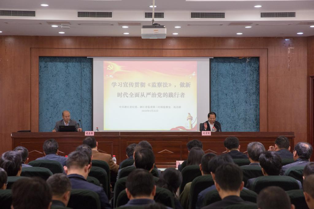会上,祝昌联主任结合自身在高校纪检监察工作中长期的研究探索和丰富的实践经验,作了题为“学习宣传贯彻《监察法》,做新时代全面从严治党的践行者”的报告。他提出,学习宣传贯彻《中华人民共和国监察法》要从六个方面把握,即坚持党的领导,立法与改革相衔接,科学立法、民主立法、依法立法,监察全覆盖,以法治思维和法治方式惩治腐败,谁来监督监委。对于如何正确理解新时代全面从严治党的内涵,则要从四个方面去把握,即如何理解全面从严治党中的“全面”;如何理解全面从严治党中的“从严”;抓好治党应把握好“坚持问题导向、把脉问诊找病因,树立规矩意识、建章立制重落实,践行使命担当、敢督敢查不停歇”三方面的问题;党员领导干部要努力练就政治过硬、担当过硬、自律过硬、能力过硬等四个“过硬”的本领。