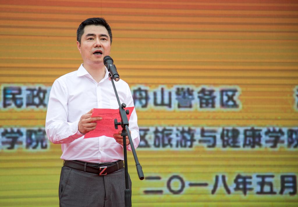 启动仪式上,出席领导共同按下了启动球,宣布2018年舟山市大学生征兵活动正式启动。我校优秀退伍大学生代表杨佳豪分享了自己的从军经历和收获感悟,陈胜奇同学代表志愿报名参军入伍的的青年大学生做表态发言,仪式现场还组织开展了参军签名、参军政策咨询等活动。