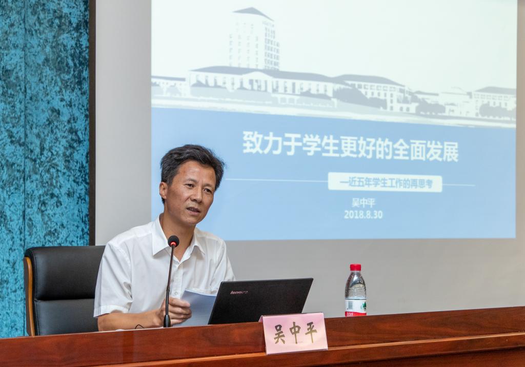 8月30—31日,我校召开2018年暑期中层干部学习会。会议听取了校领导专题报告,传达学习了全省组织工作会议精神和全省本科高校书记校长暑期读书会精神,并对学校下半年重点工作进行了安排部署。学校党政领导班子成员、副处及以上实职干部和各学院(部、馆)院长(主任、馆长)助理参加会议。学校党委副书记吴中平、虞聪达分别主持会议。