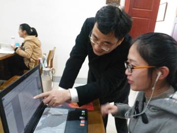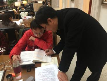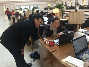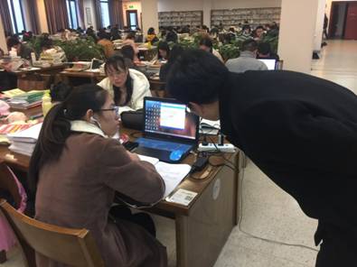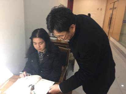 严书记进馆后,逐层巡视学习空间,根据每个学生的不同专业和学习内容,和20余位同学进行了互动交流。结合与英语专业学生口语对话中发现的问题,对该英语专业学生包括口语在内的英语学习进行了纠正、指导。