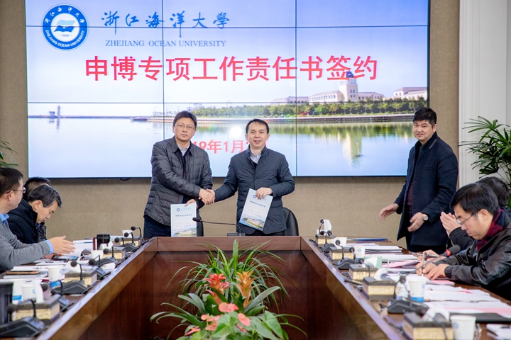 会上,海洋科学与技术学院、水产学院、船舶与机电工程学院、食品与医药学院、国家海洋设施养殖工程技术研究中心、港航与交通运输工程学院、石化与能源工程学院、数理与信息学院、经济与管理学院、人文学院、教师教育学院、外国语学院、马克思主义学院、创新应用研究院等学院负责人分别作申博进展情况的汇报,并同学校签署申博专项工作责任书。