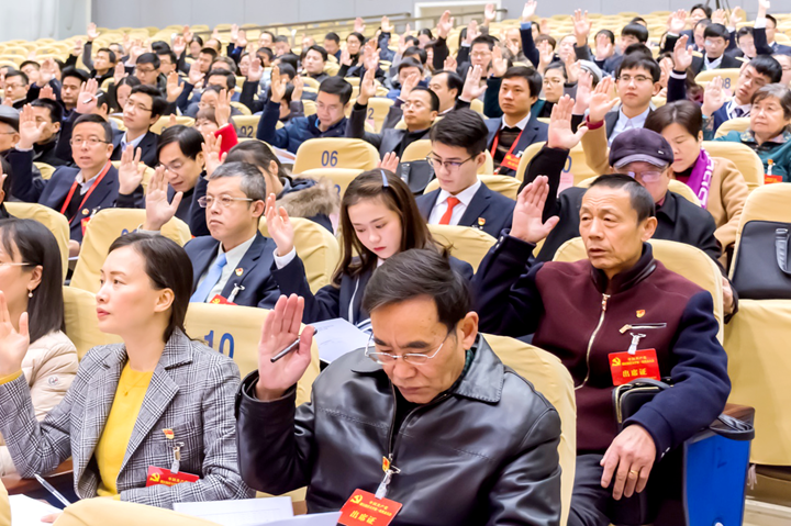 大会举手表决通过党委工作报告和纪委工作报告。记者 蒲彦清 摄
