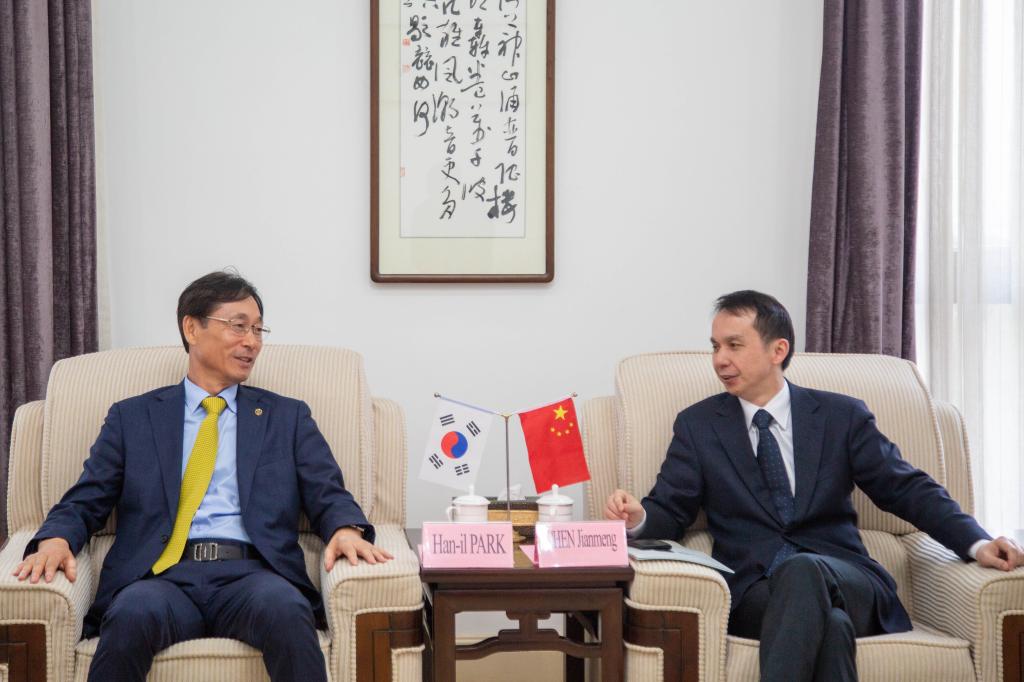 会谈最后,双方就更新合作协议达成一致。陈建孟与朴汉一续签合作谅解备忘录,并合影留念。