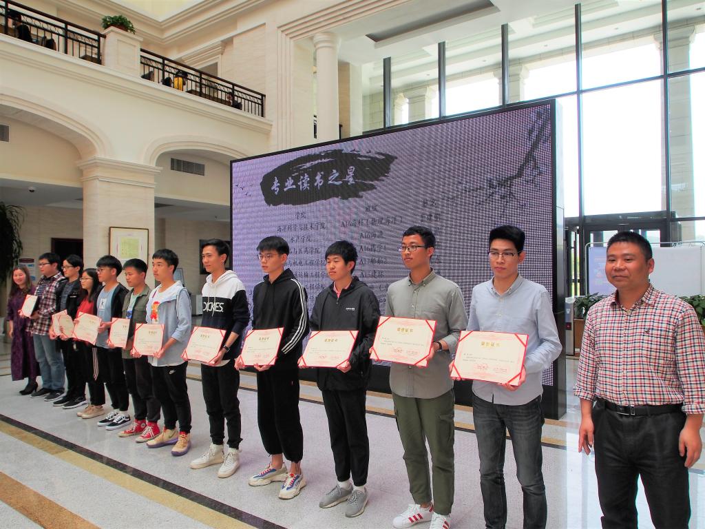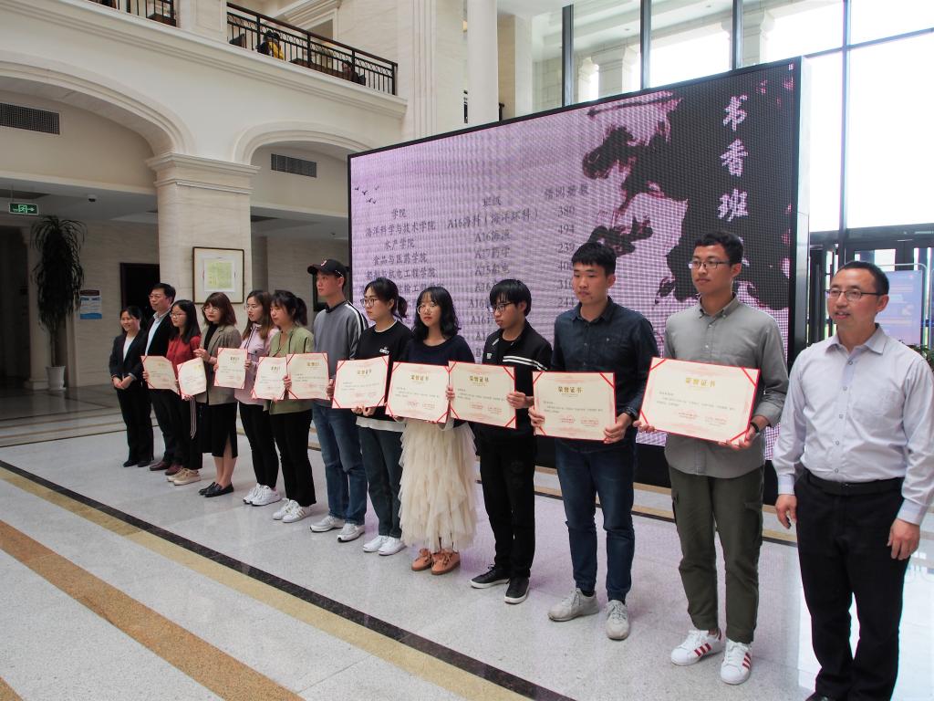 仪式上公布了书香班级、书香达人等荣誉称号,表彰了刘新宇等11位书香达人,B17历史等10个书香班级,王佳浩等11位专业读书之星。校团委负责人介绍了第十届“书香海大”活动安排。图书馆负责人对2018年度浙江海洋大学学生阅读状况进行了分析报告,介绍数字图书馆的建设情况。