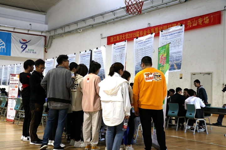 为深入贯彻国家有关“就业优先”的决策部署,努力推动毕业生更高质量和更充分就业,也为了引导和鼓励毕业生留舟就业,服务舟山自贸区建设。近期,浙江海洋大学在新城校区体育馆举办了两场2019届毕业生春季校园招聘会,其中一场为舟山市企业专场招聘会。
