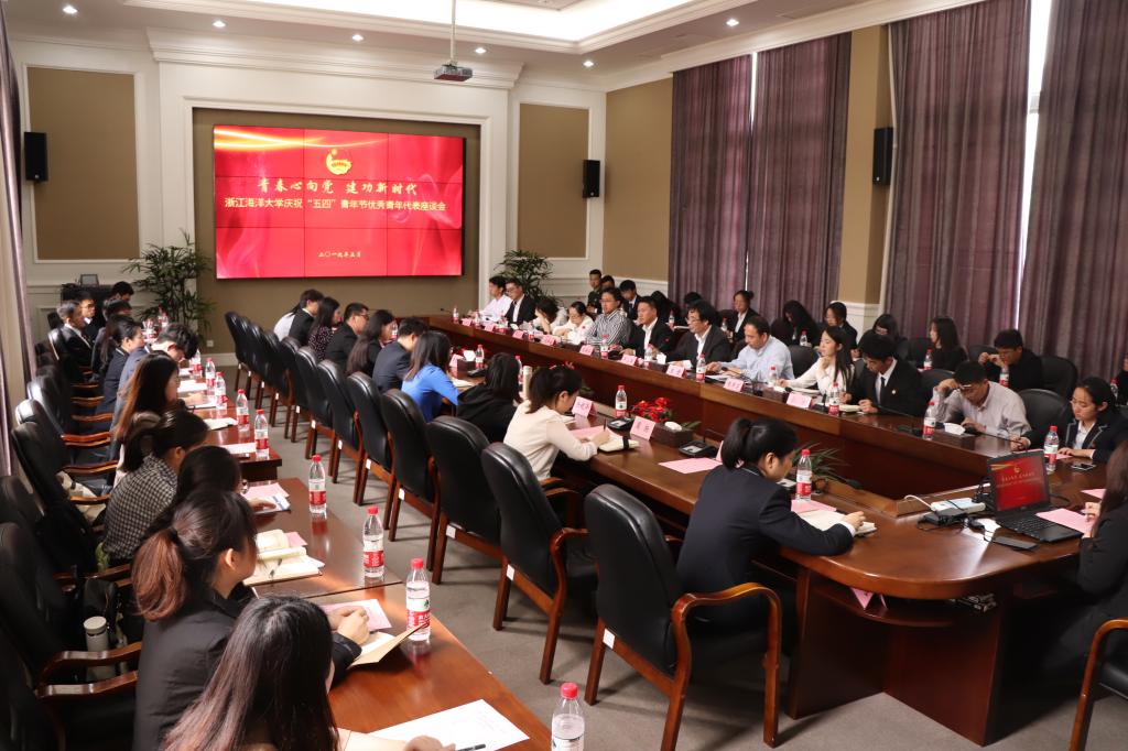 为弘扬五四精神,让五四火炬照亮浙江海洋大学青年师生的奋斗之路,5月5日,学校召开浙江海洋大学庆祝“五四”青年节优秀青年代表座谈会。校党委书记严小军出席座谈会并讲话,校党委副书记王捷主持会议,学校“青年五四奖章”获得者、“五四红旗团支部”团支书、优秀青年教师代表、团学代表60余人参加座谈会。