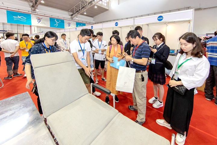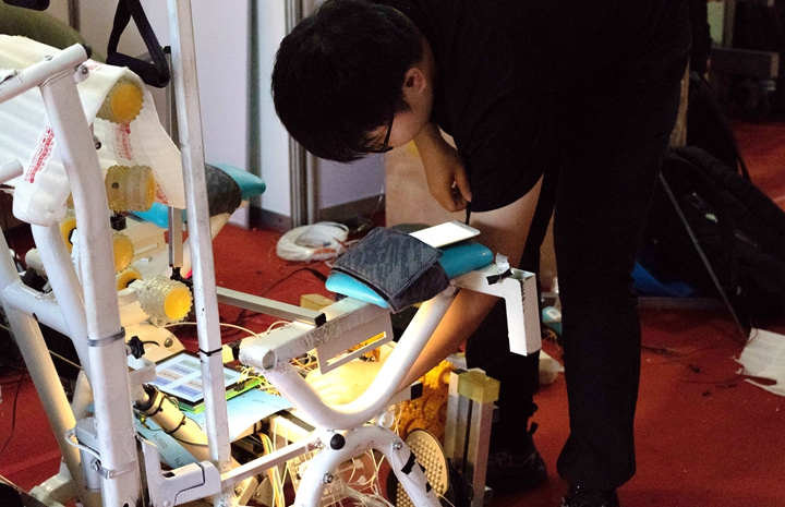 “双人运动一体机”“便携式可折叠老年代步车”“移动智能药箱”、“自动熬药机”“自动穿衣架”……由220多组以“智慧养老”为设计理念机械设计作品组成的展区让人眼花缭乱。其中,基于Arduino的智能一体化轮椅床、“不用弯腰”储物柜、腋下抬升式助立健行器、老年助起登高座椅、多功能偏瘫手指电动训练器等来自浙江海洋大学的设计作品的创意和理念也获得大家的广泛认可,这些作品也成为展示现场一道道亮丽的风景线。
