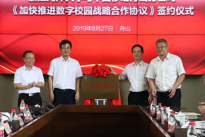中国移动舟山分公司与浙江海洋大学相关职能部门负责人参加签约仪式。