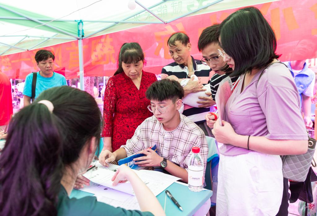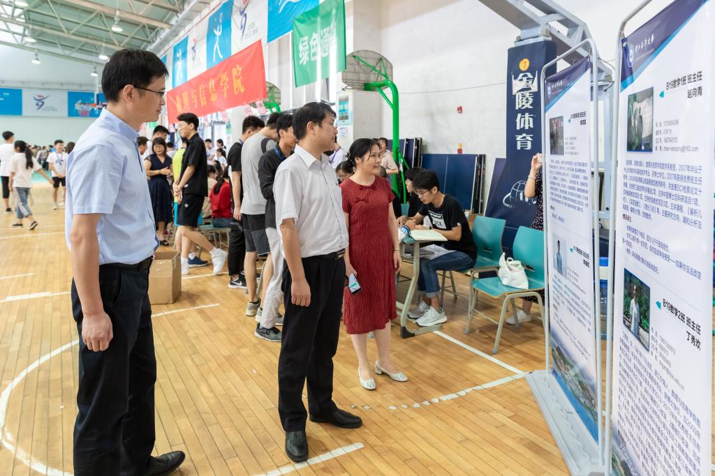 9月1日上午,校党委副书记叶舟带领相关部门负责人来到迎新现场,慰问迎新工作人员,看望2019级新生。