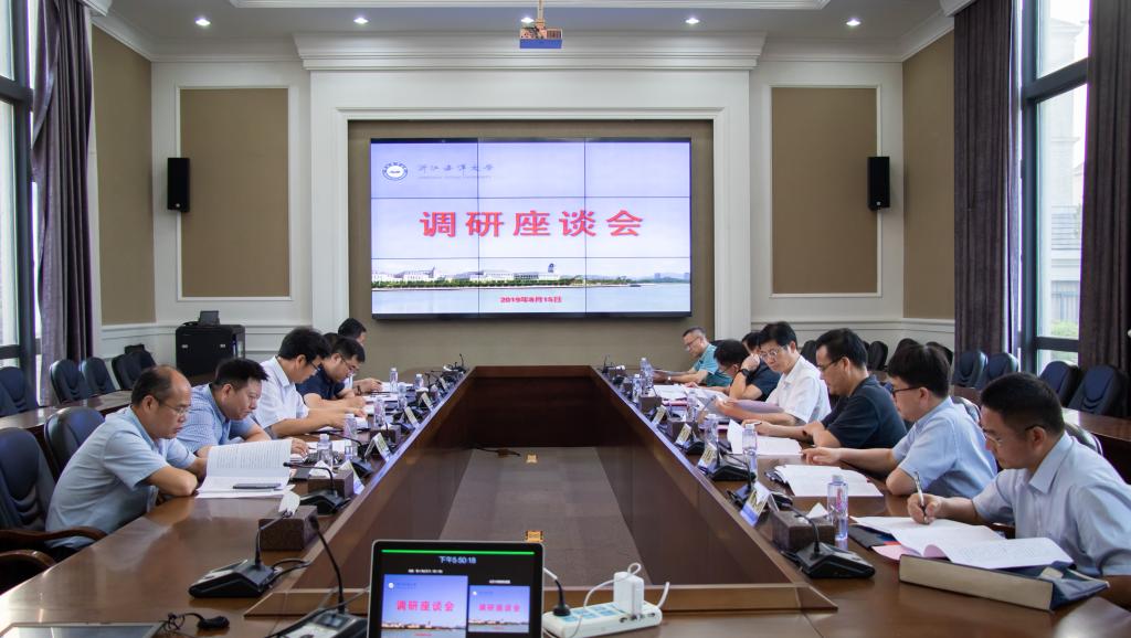 8月15日下午,省教育厅党委副书记干武东一行来浙江海洋大学调研党建、思政和“最多跑一次”改革工作情况。省教育厅法规处处长丁松泉、省教育厅法规处副处长张应敏、省教育厅宣教处副处长吕明再和舟山市教育局党委书记、市教育局局长祝幸安长等陪同调研。浙江海洋大学党委书记严小军,副校长徐士元,党委委员、宣传部部长陈宏祖以及学校相关职能部门负责人陪同调研并作情况介绍。