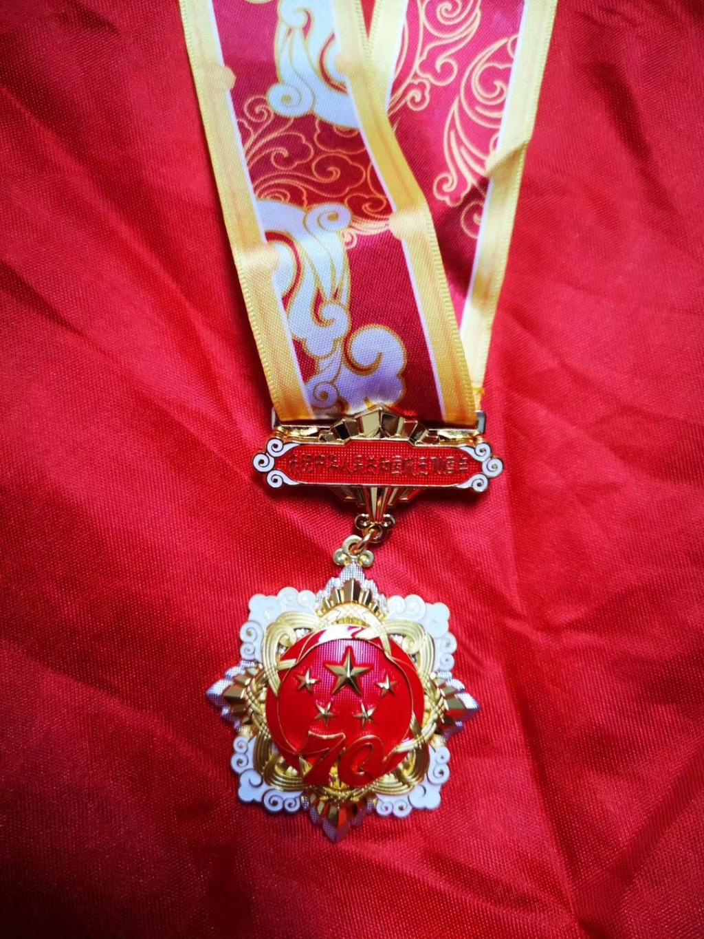 今年是建国70周年,是个特殊之年。中共中央、国务院、中央军委向对新中国作出特殊贡献的老同志颁发“庆祝中华人民共和国成立70周年”纪念章,对于加强爱国主义教育,培育和践行社会主义核心价值观,增强中国特色社会主义伟大事业凝聚力和感召力,具有十分重要的意义,这是新中国成立70周年系列活动的重要组成部分。纪念章主要元素为五星、“70”飘带、团锦结、如意祥云和光芒。核心部分为五星,代表国家荣誉;“70”飘带象征中华人民共和国70年奋斗历程;团锦结环绕在五星和“70”飘带周围,寓意全国各族人民大团结,构建人类命运共同体的愿景。章体外环以如意祥云、光芒构成,象征人民对美好生活的向往,同时表达隆重庆祝中华人民共和国生日,礼赞国家富强、民族振兴、人民幸福的辉煌成就,以及在70年辉煌奋斗成就的基础上不忘初心、继续前进的坚定决心。