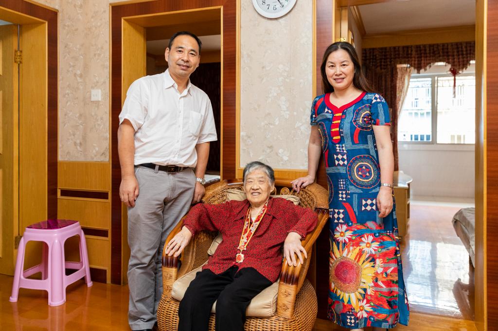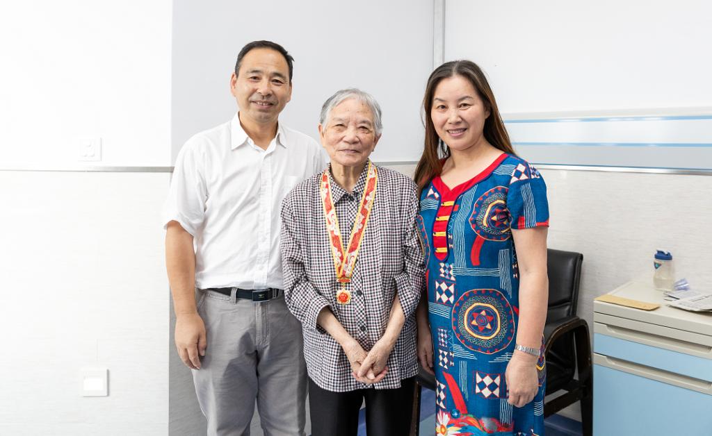 当纪念章挂在胸前时,这些耄耋老人们激动不已。参加过抗美援朝的蒋肖蕉老师,在医院的病房里,深情地唱起了《中国人民志愿军战歌》,仿佛峥嵘岁月就在眼前。陈剑英老师紧紧握着王捷副书记的手,连声说“感谢共产党,感谢习近平!”。早已等候在家的姜庆云同志,清晰地回忆起十年前的9月26日,他从学校领导手中接过建国60周年纪念章的幸福时刻。不久前刚刚去世的抗战干部汪祥坡同志,未能等到今天,其女儿从学校领导手中接过纪念章时,依然难抑激动之情。