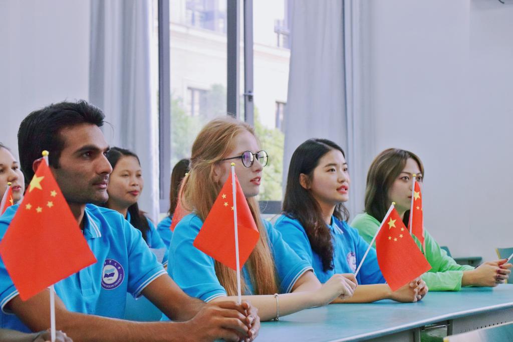 9月25日,浙海大国际学生喀秋莎、khan、天佑等来自18个国家的留学生代表演绎经典歌曲《 我爱你-中国》、致敬经典,朗诵著名诗人艾青的诗歌《我爱这土地》,献礼中华人民共和国成立70周年。