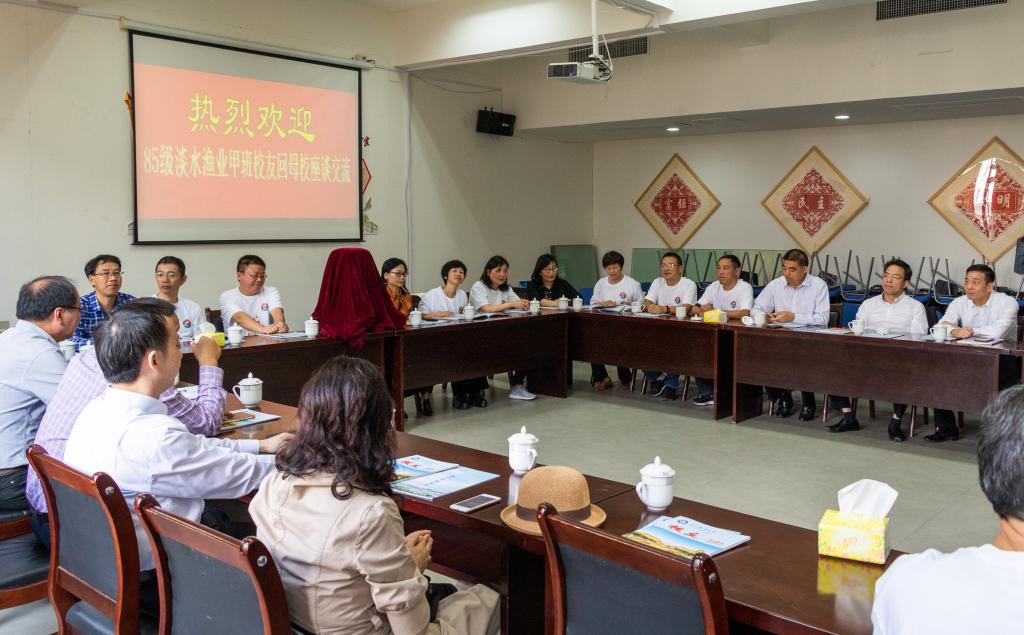 10月19日,原浙江水产学院85淡水渔业专业甲班校友30余人集体返校。校长陈建孟,原正校级巡视员夏跃平,学校校友办、水产学院相关教师与返校校友举行座谈会,怀念青葱岁月、共叙师生情谊。