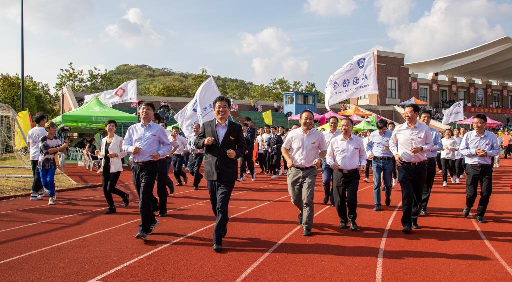 随着学校党委书记严小军宣布运动会开幕,恒尊体育场上掌声雷动。全体参赛运动员在学校领导的带领下,启动了“2019年浙江海洋大学海洋体育月阳光长跑”活动。