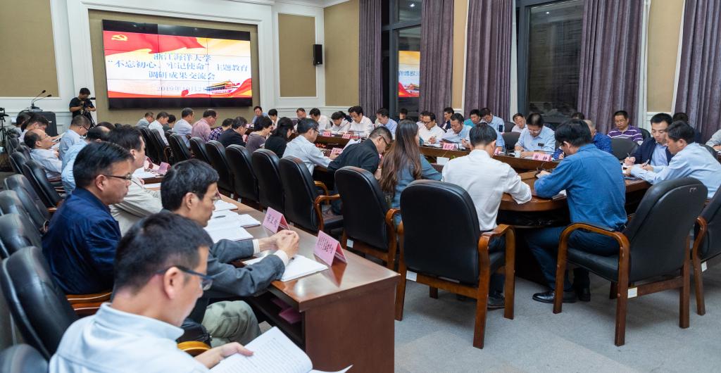 10月24日晚,浙江海洋大学在行政楼6号会议室召开“不忘初心、牢记使命”主题教育调研成果交流会。省委第九巡回指导组成员,学校“不忘初心、牢记使命”主题教育领导小组及办公室成员,各学院党政负责人,各单位、各部门负责人参加交流会。