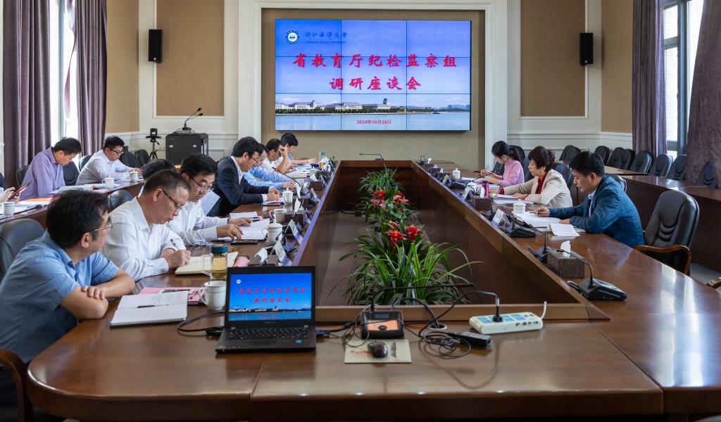 10月24日,省纪委省监委驻省教育厅纪检监察组组长郭丽华一行3人前来浙江海洋大学,调研“不忘初心、牢记使命”主题教育、“清廉学校”建设、纪检监察工作等情况,并与学校党委班子成员座谈交流。
