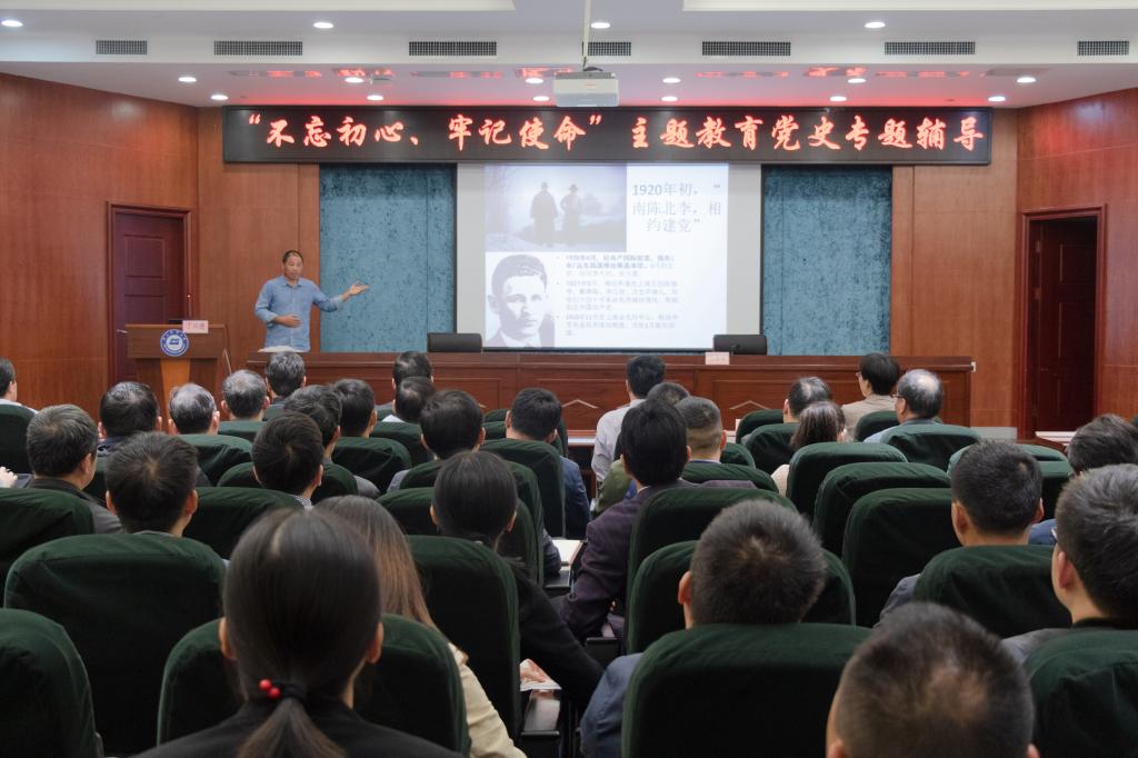 根据学校主题教育安排,11月15日,学校开展“不忘初心、牢记使命”主题教育党史专题辅导。此次党史辅导邀请了学校马克思主义学院丁以德博士讲授。校党委委员,纪委书记刘秀丽主持。学校领导班子成员,中层干部,各二级党组织书记、副书记,全体师生党支部书记、辅导员、学工办主任、分团委书记以及相关职能部门科级干部参加。