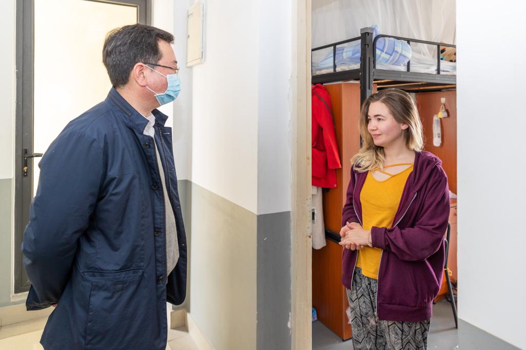 4月10日上午,浙江海洋大学副校长吴承亮一行赴留学生宿舍楼,看望慰问疫情期间留校的国际学生,调研疫情防控工作。