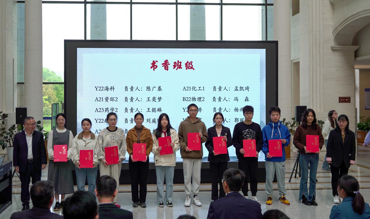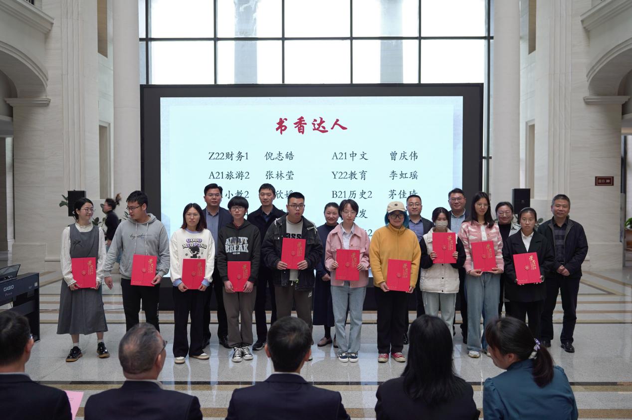 仪式上还举行了“校长图书角”书评、书香达人、专业读书之星、书香班级的个人和集体颁奖。武传宇校长亲自为“校长图书角”书评获奖者颁奖并合影留念。