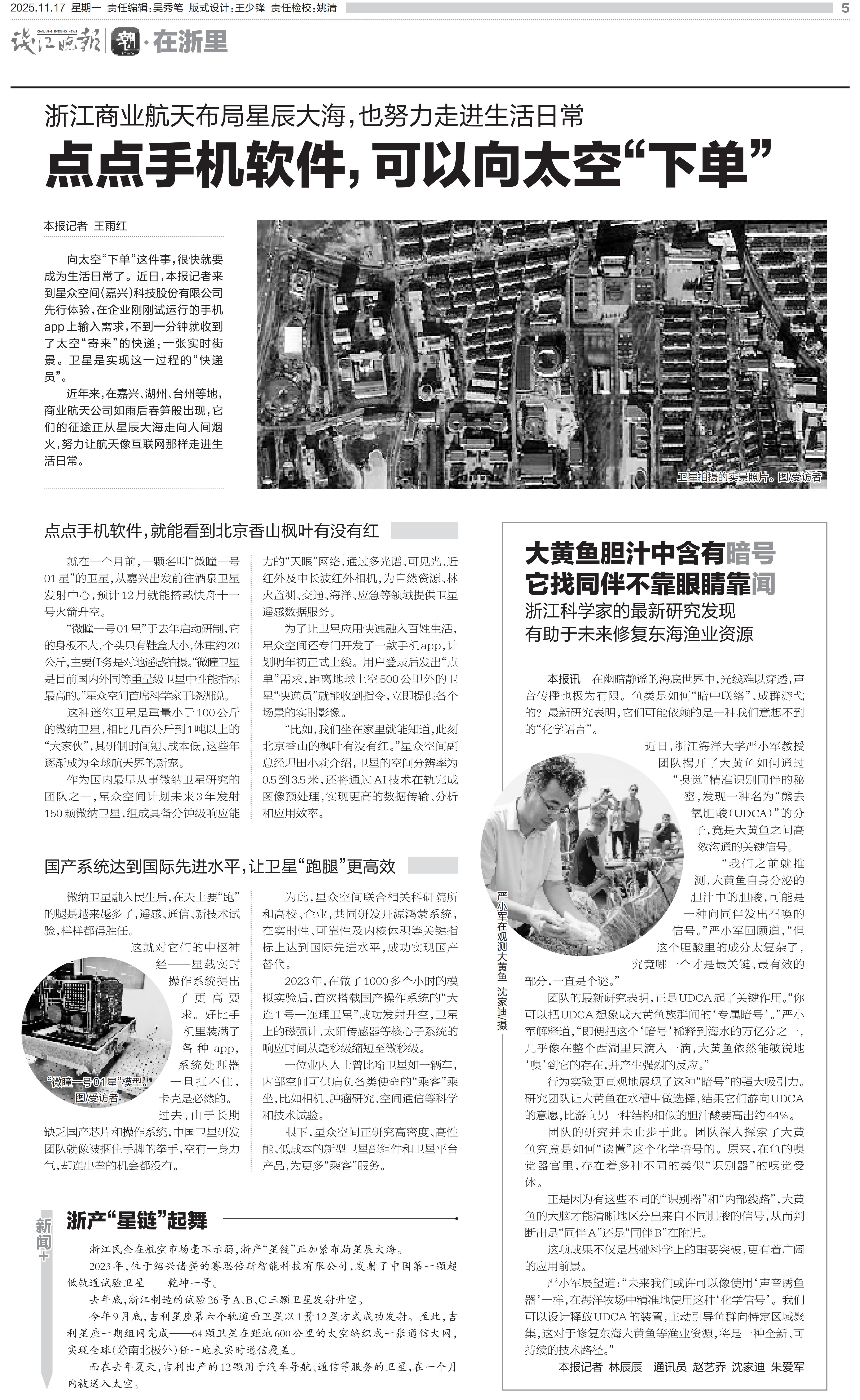 幽暗静谧的海底世界里,光线难以穿透,声音传播也极为有限。鱼类是如何“暗中联络”、成群游弋的?“它们可能依赖的是一种我们意想不到的‘化学语言’”。浙江海洋大学严小军教授说,研究团队发现了一种名为“熊去氧胆酸(UDCA)”的分子是大黄鱼之间高效沟通的关键信号。“我们之前就推测,大黄鱼自身分泌的胆汁中的胆...