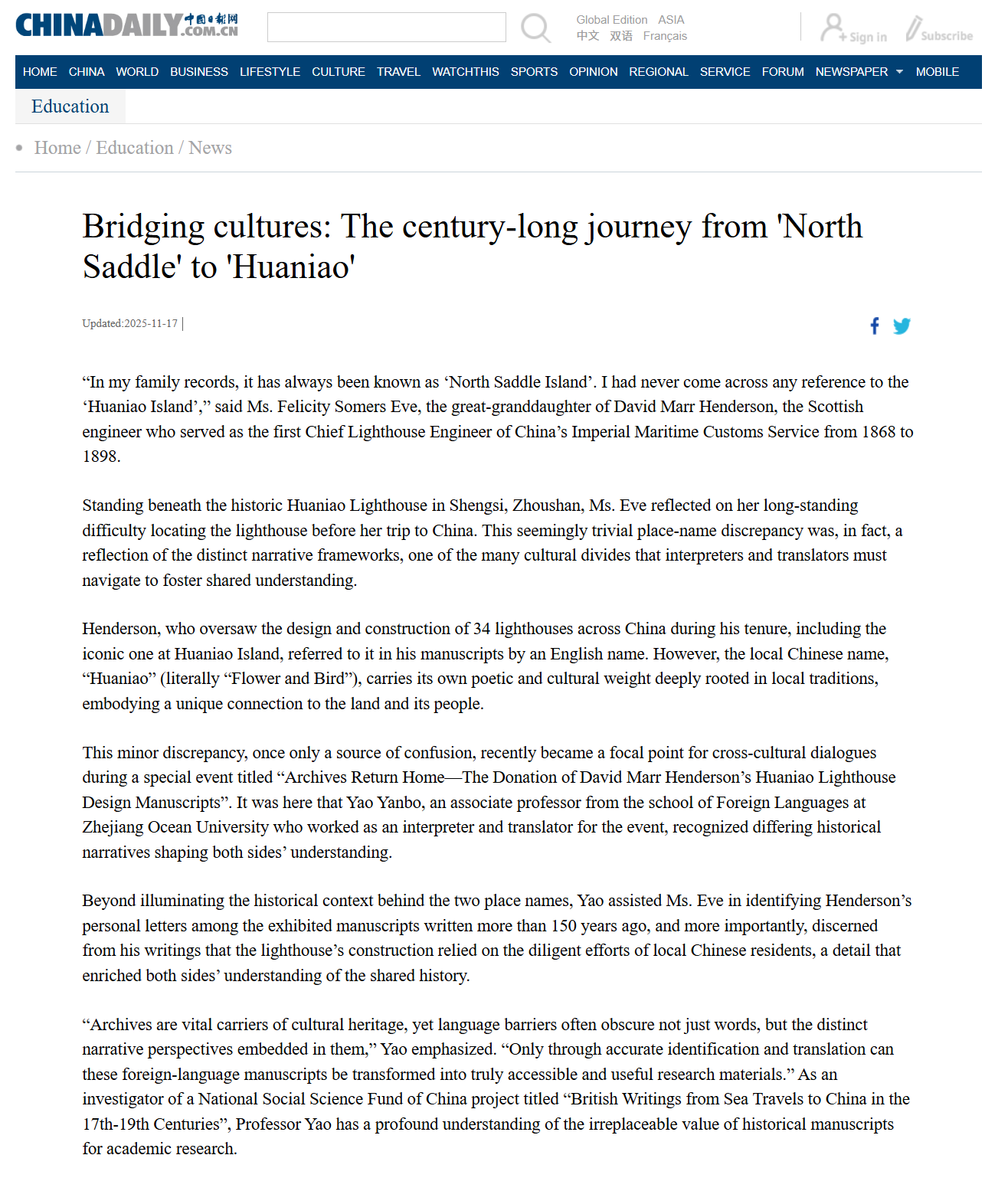 “Inmyfamilyrecords,ithasalwaysbeenknownas‘NorthSaddleIsland’.Ihadnevercomeacrossanyreferencetothe‘HuaniaoIsland’,”saidMs.FelicitySomersEve,thegreat-granddaughterofDavidMarrHenderson,theScottishengineerwhoservedasthefirstChiefLighthouseEngineerofChina’sImperialMaritimeCustomsServicefrom1868...
