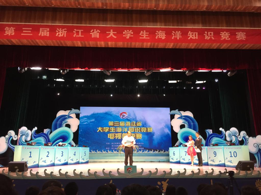 10月21日、22日,第三届浙江省大学生海洋知识竞赛现场赛半决赛、电视总决赛在我校隆重举行。国家海洋局办公室、宣教中心,省海洋与渔业局、团省委、省学联、浙江电视台公共新闻频道,以及宁波、温州、嘉兴、舟山、台州市海洋与渔业局等单位领导出席本次总决赛,省海洋与渔业局陈远景副局长出席总决赛并致辞。 来自浙...