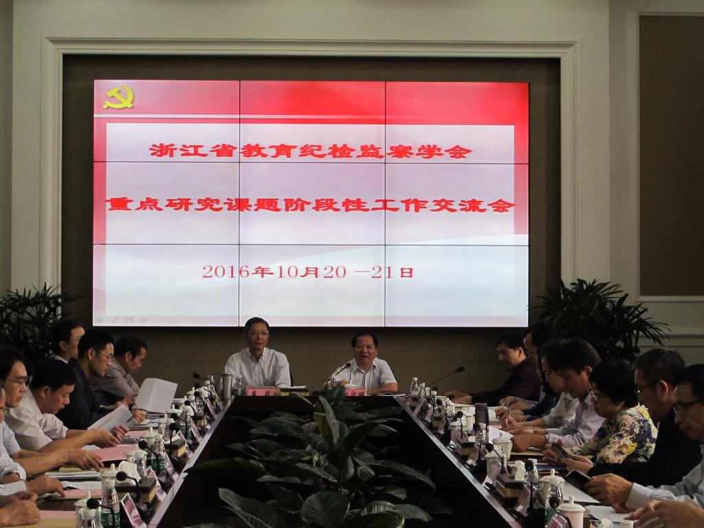 近日,省教育纪检监察学会重点研究课题阶段性工作交流会在我校召开。省纪委派驻教育厅纪检组组长、省教育纪检监察学会会长葛菲出席会议并讲话,浙江师范大学纪委书记、学会副会长兼秘书长牛东红主持会议。我校党委书记刘宏明参加会议并致辞。 会上,中国美术学院、浙江师范大学、杭州电子科技大学、浙江理工大学、浙江财...