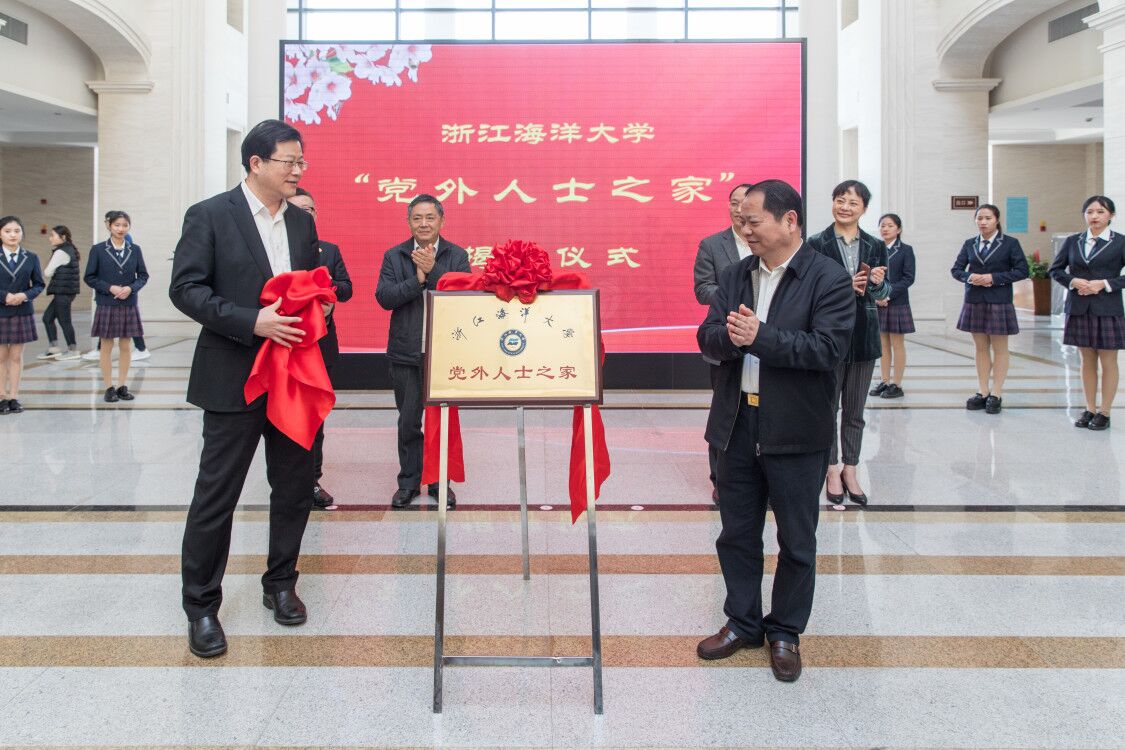 3月28日下午,浙江海洋大学“党外人士之家”揭牌仪式在图书馆举行。舟山市委常委、统战部部长王伟,校党委书记刘宏明到场祝贺,并为“党外人士之家”揭牌。校党委副书记虞聪达,民革舟山市委会主委、市政协副主席张伟平,民进舟山市委会主委、市政协副主席、舟山大宗商品交易中心主任贝璐国,九三学社舟山市委会主委、市...