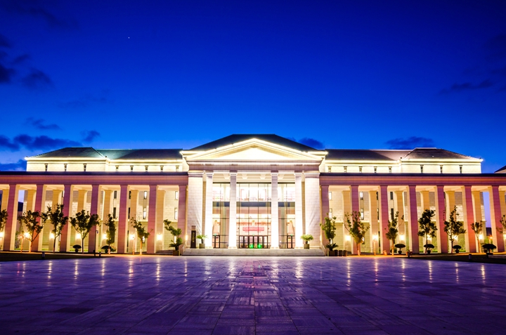 浙江海洋大学图书馆位于本部校区的中轴线博雅大道上,面朝烟波浩瀚的太平洋,俯瞰风光旖旎的揽月湖,背依四季如春的中央大草坪,远眺云霞明灭的紫薇山,得天独厚的区位凝聚超强人气,使其成为万众瞩目的焦点。
