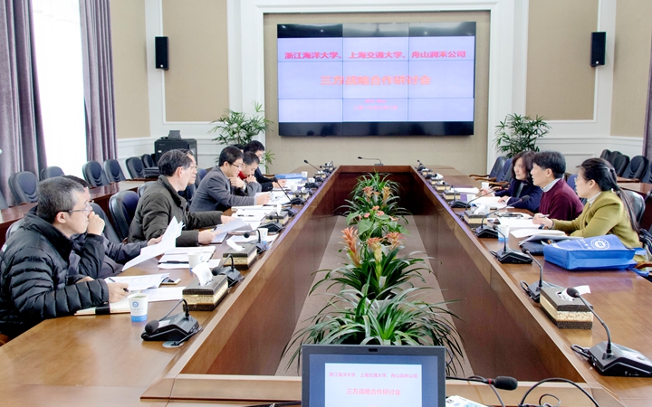 3月2日下午,浙江海洋大学、上海交通大学、舟山润禾公司三方战略合作研讨会在浙江海洋大学新城校区行政楼六号会议室举行。浙江海洋大学副校长徐汉祥、上海交通大学海洋学院院长周朦出席会议并讲话。浙江海洋大学实验室建设与设备管理处、信息化建设与管理中心、地方合作处、科研处、计划财务处、海洋与科学技术学院、船...
