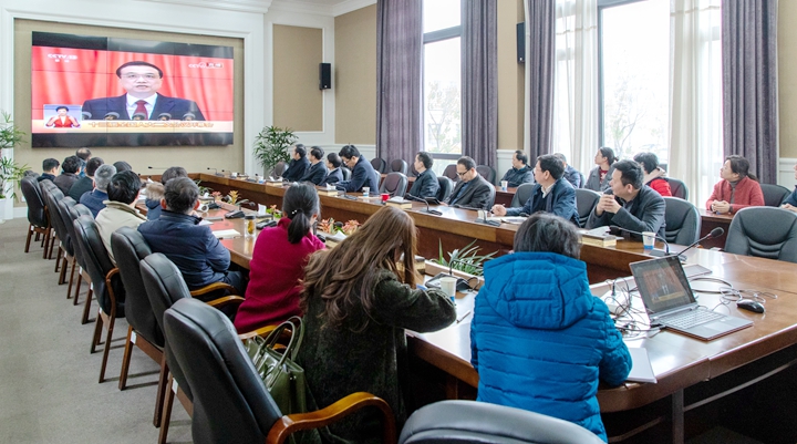 3月5日上午9时,十三届全国人大二次会议在北京人民大会堂开幕,习近平等党和国家领导人出席大会,国务院总理李克强代表国务院向十三届全国人大二次会议作政府工作报告。3月5日,浙江海洋大学组织集体观看十三届全国人大二次会议开幕式直播。记者 沈家迪 摄严小军、陈建孟等校领导在会场收看大会视频直播。记者 沈家迪 ...
