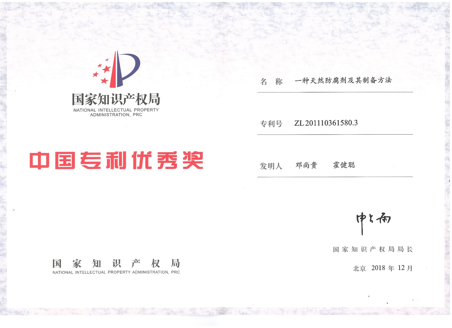 日前,中国专利奖获奖名单公布,浙江海洋大学邓尚贵教授、霍健聪副教授申报的“一种天然防腐剂及其制备方法(ZL201110361580.3)”荣获中国专利优秀奖,这是我校第二次获得该奖项。该获奖专利以乌梅、地肤子等大宗低值天然药食两用植物为原料,通过水提、醇提等手段从中提取天然抑菌物质,利用复配手段将多种天然抑菌物质混...